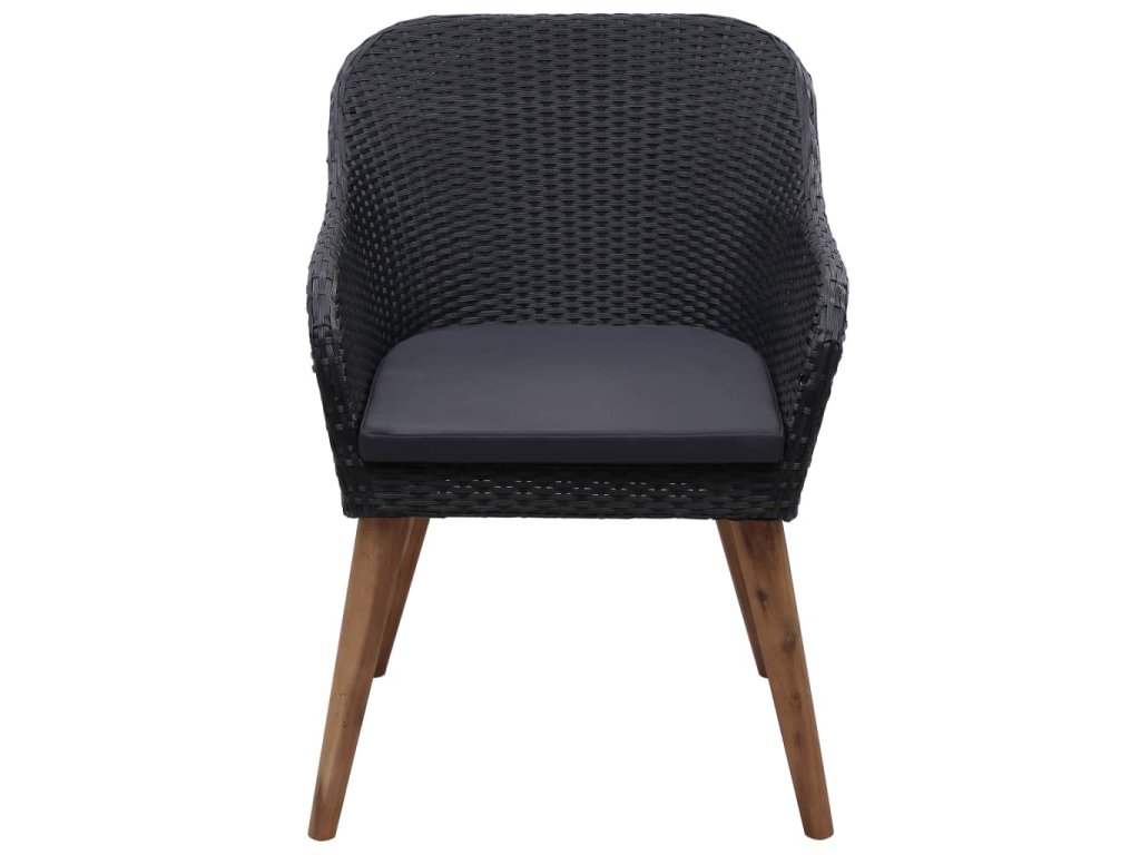 Jídelní stůl je zhotovený z masivního akáciového dřeva s olejovaným povrchem, takže je stabilní, odolný a nenáročný na údržbu. Jídelní židle mají rám z práškově lakované oceli, opletený PE ratanem, který výborně vzdoruje klimatickým vlivům. Dlouho vám proto vydrží a snadno je očistíte. Ergonomický tvar spolu s hustě polstrovanými poduškami vám při sezení zaručí maximální pohodlí. Polyesterové potahy podušek nevyžadují téměř žádnou údržbu a dají se jednoduše stáhnout a oprat.