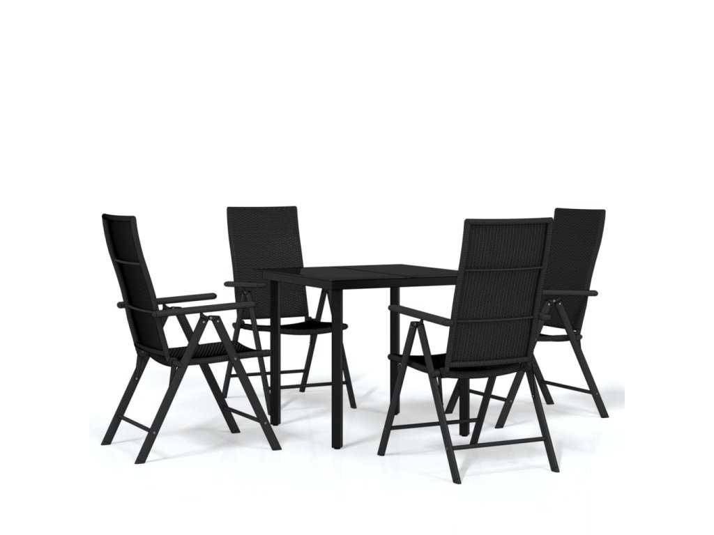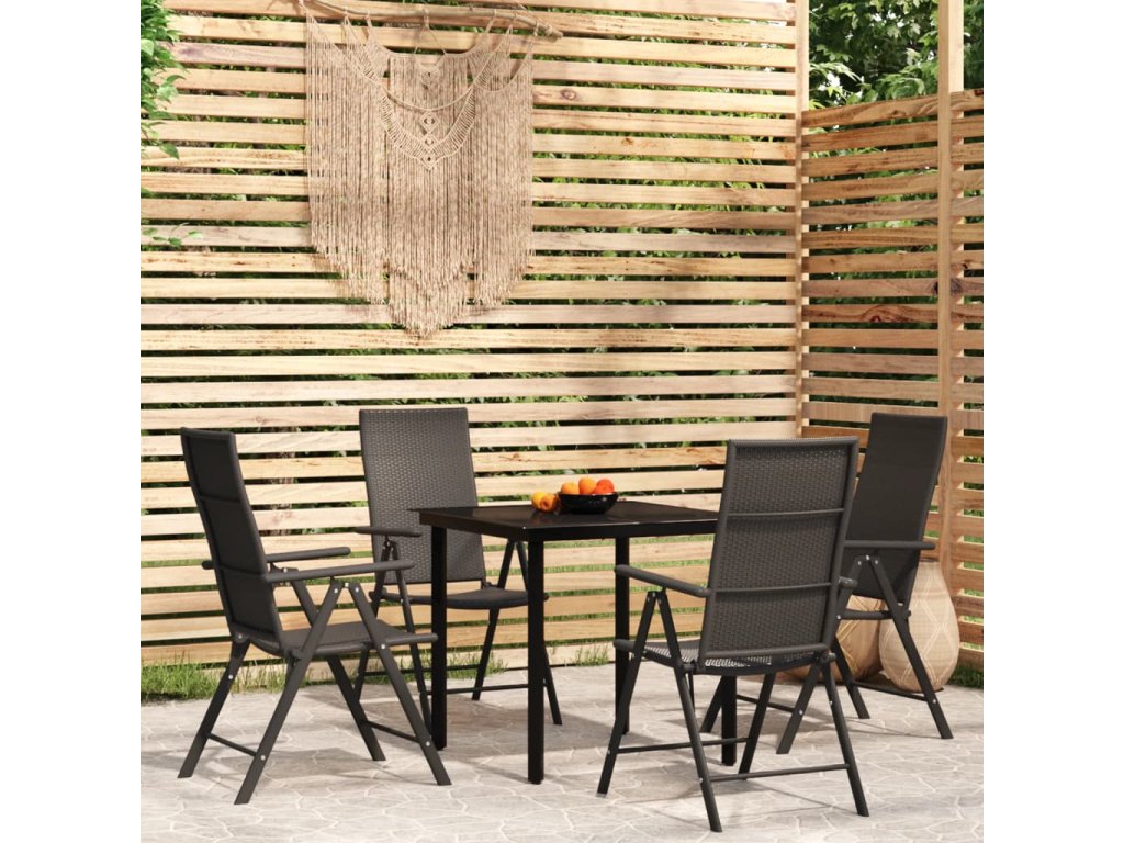 Zahradní jídelní stůl má práškově lakovaný ocelový rám, takže je robustní a stabilní a ideální pro venkovní použití. Hladká skleněná deska stolu se snadno čistí vlhkým hadříkem a skvěle vám poslouží k podávání jídla a pití nebo k vystavení různých dekorativních předmětů. Židle jsou vyrobené z PE ratanu, jsou proto lehké a voděodolné. Jejich opěradla lze navíc naklonit do 7 různých poloh, abyste si mohli vždy najít ten nejpohodlnější způsob sezení. Pokud židle zrovna nepoužíváte, můžete je složit, a ušetřit tak místo.
