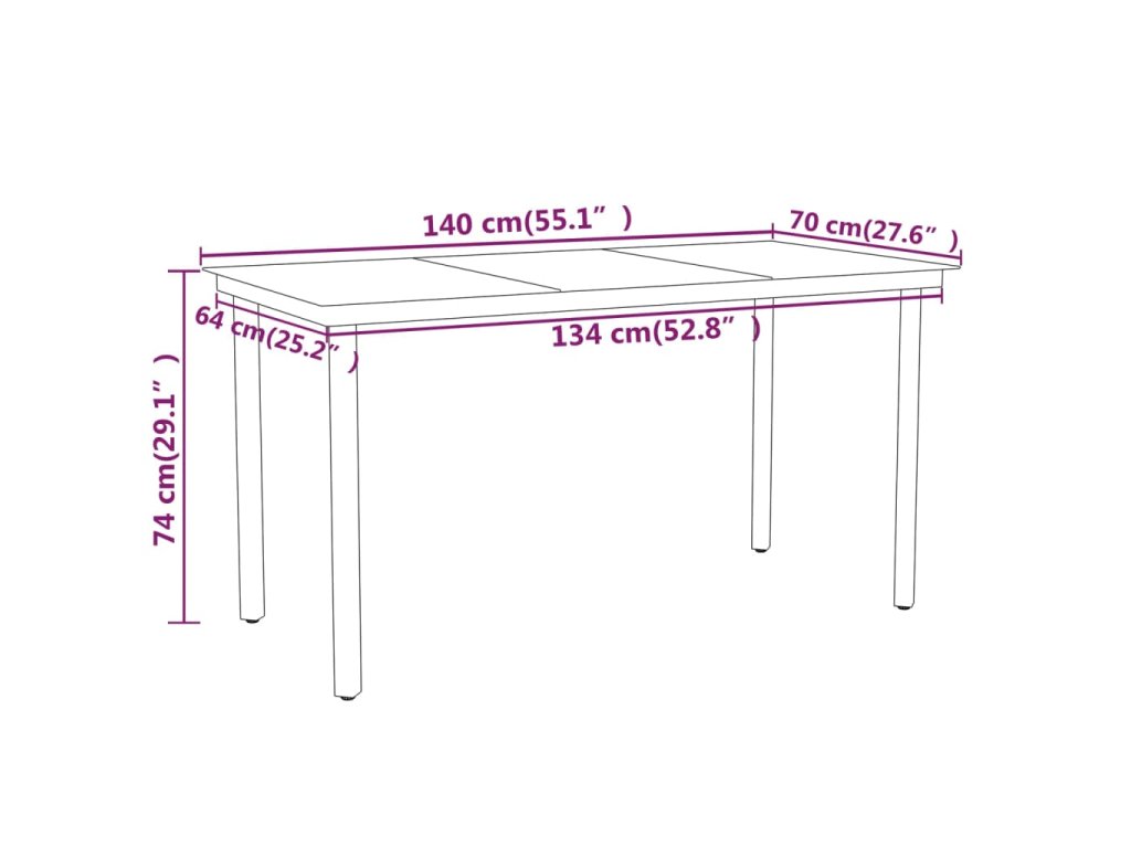 - Rozměry: 140 x 70 x 74 cm (D x Š x V)