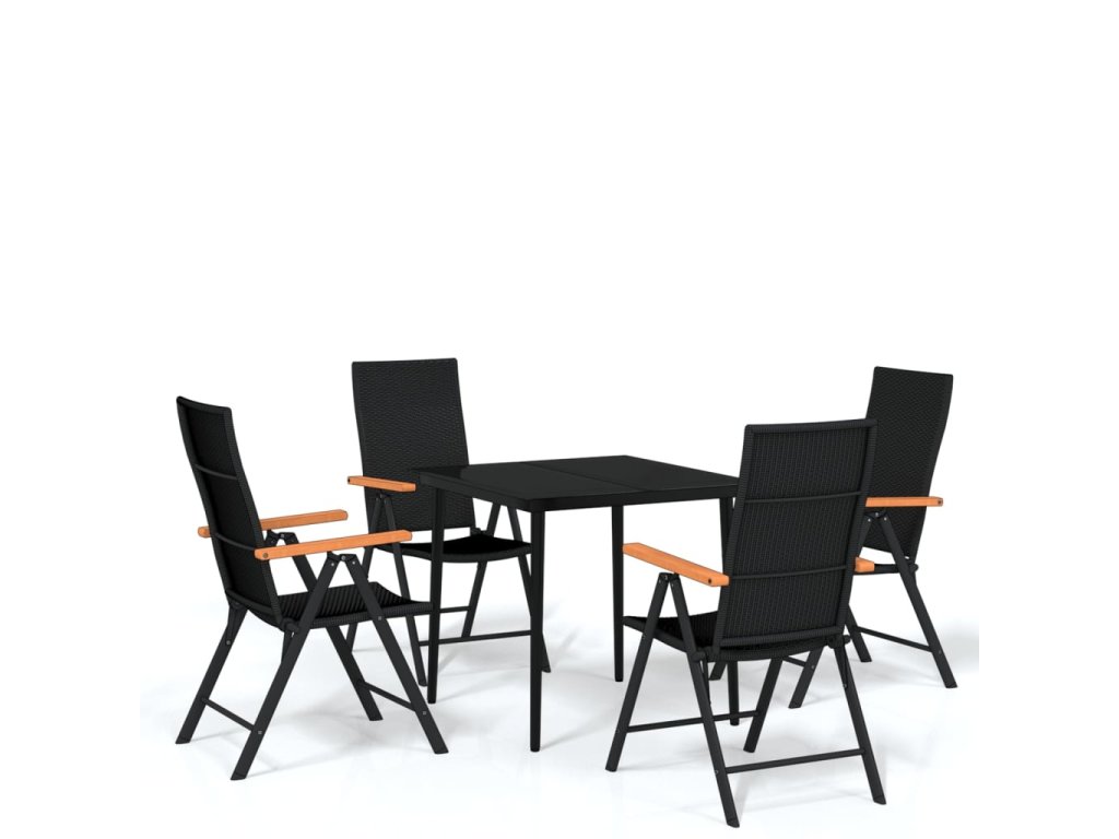 Zahradní jídelní set má práškově lakovaný ocelový rám, takže je robustní a stabilní a ideální pro venkovní použití. Hladká skleněná deska stolu se snadno čistí vlhkým hadříkem a skvěle vám poslouží k podávání jídla a pití nebo k vystavení různých dekorativních předmětů. Židle jsou vyrobené z PE ratanu, jsou proto lehké a voděodolné. Jejich opěradla lze navíc naklonit do 7 různých poloh, abyste si mohli vždy najít ten nejpohodlnější způsob sezení.