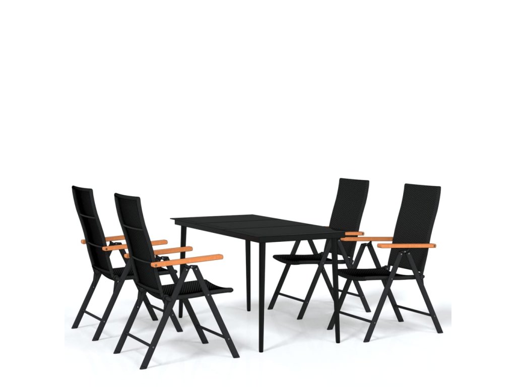 Zahradní jídelní set má práškově lakovaný ocelový rám, takže je robustní a stabilní a ideální pro venkovní použití. Hladká skleněná deska stolu se snadno čistí vlhkým hadříkem a skvěle vám poslouží k podávání jídla a pití nebo k vystavení různých dekorativních předmětů. Židle jsou vyrobené z PE ratanu, jsou proto lehké a voděodolné. Jejich opěradla lze navíc naklonit do 7 různých poloh, abyste si mohli vždy najít ten nejpohodlnější způsob sezení.