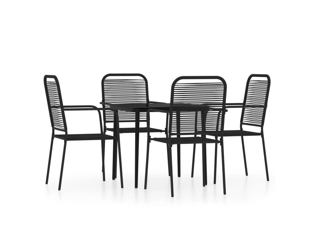 Tato zahradní jídelní souprava má ocelový rám s práškovým nástřikem, což dodává stolu a židlím na stabilitě a odolnosti. Opěradlo a sedák jsou vyrobeny ze spleteného bavlněného lanka, které je měkké na dotek a pevné pro dlouhodobé používání. Stůl má desku z tvrzeného skla, která se snadno čistí vlhkým hadříkem a je ideální pro servírování jídel a nápojů či vystavení různých dekorativních předmětů.