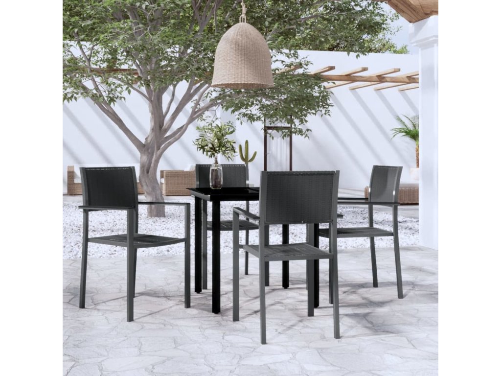 Jídelní set na terasu má práškově lakovaný ocelový rám, takže je robustní a stabilní a ideální pro venkovní použití. Hladká skleněná deska stolu se snadno čistí vlhkým hadříkem a skvěle vám poslouží k podávání jídla a pití nebo k vystavení různých dekorativních předmětů. Lehké jídelní židle jsou vyrobené z plastu, lze je proto bez problémů udržovat v čistotě a přesouvat je. Svým provedením navíc připomínají ratan, a tak vnesou do vašeho venkovního bydlení nádech přírodního kouzla!