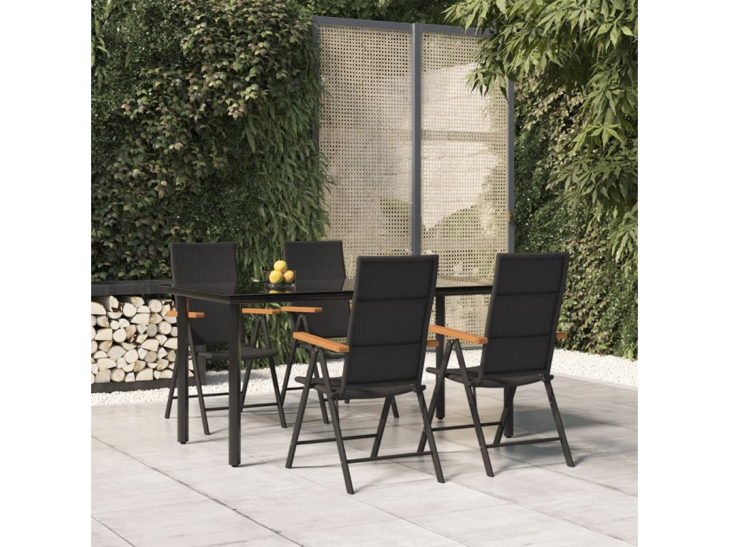 5dílný zahradní jídelní set černý a hnědý polyratan 3156520