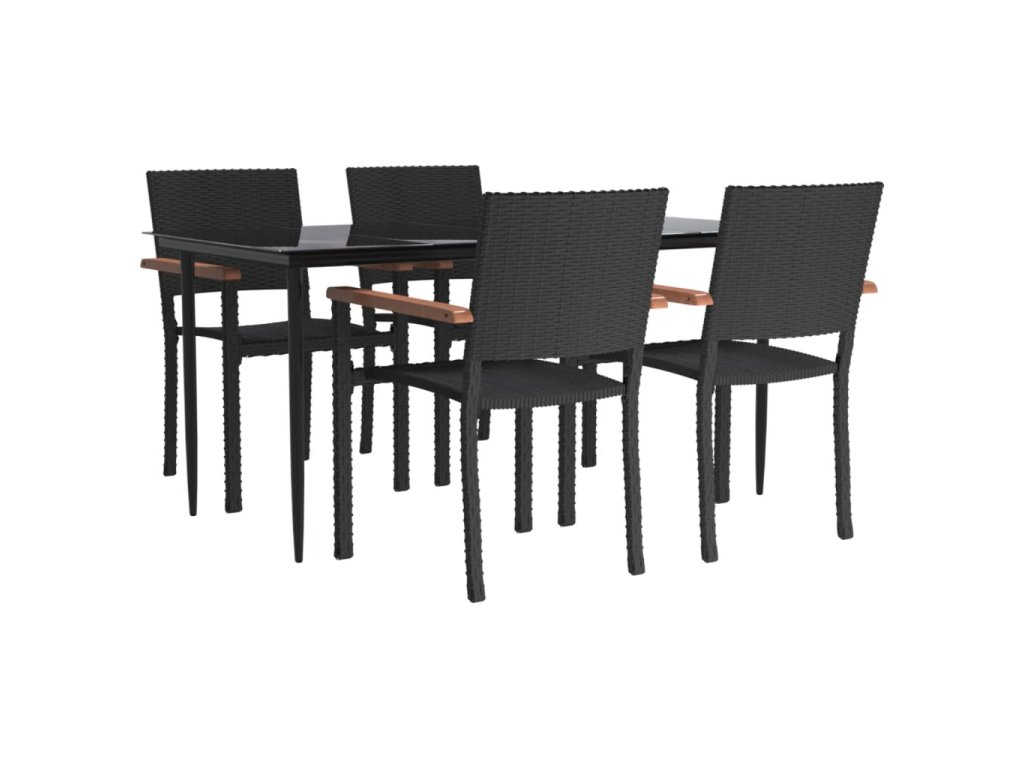 - Materiál: polyethylen s ratanovým vzhledem, masivní akáciové dřevo, práškově lakovaná ocel