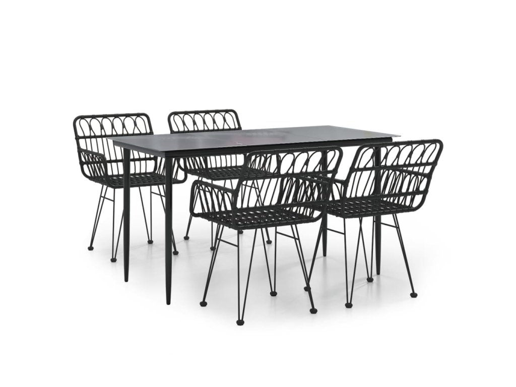 5dílný zahradní jídelní set černý polyratan 3157854