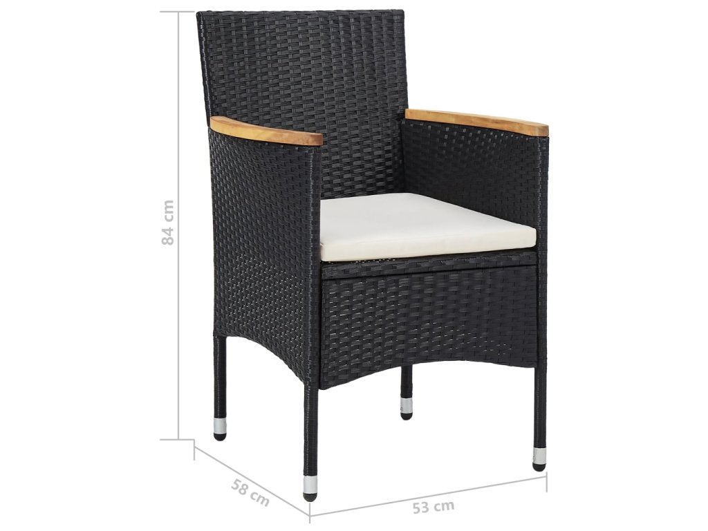 5dílný zahradní jídelní set černý polyratan a akáciové dřevo 3058326