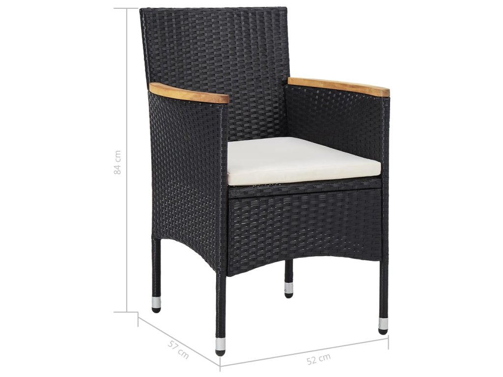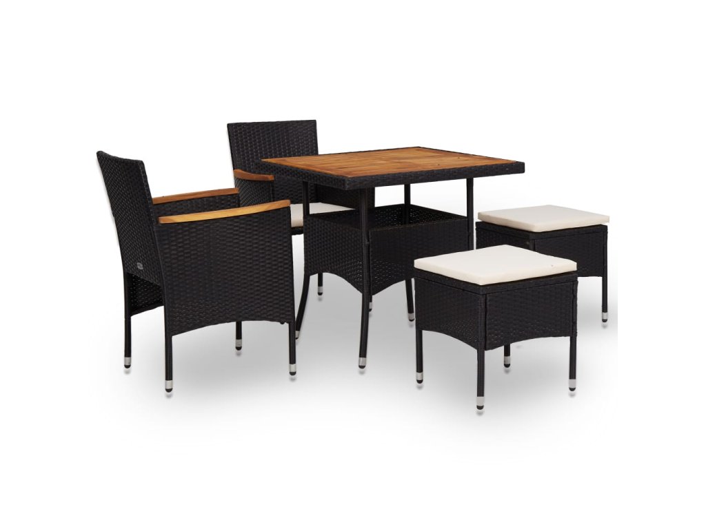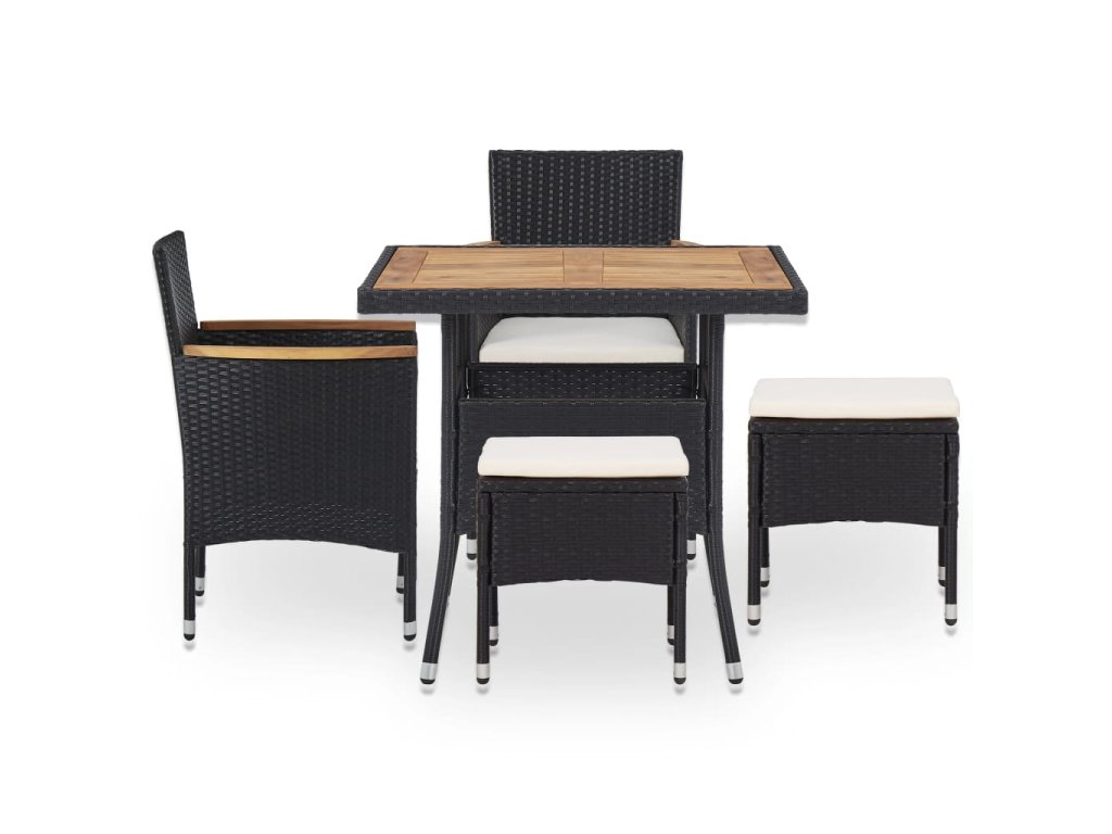 5dílný zahradní jídelní set černý polyratan a akáciové dřevo 46169