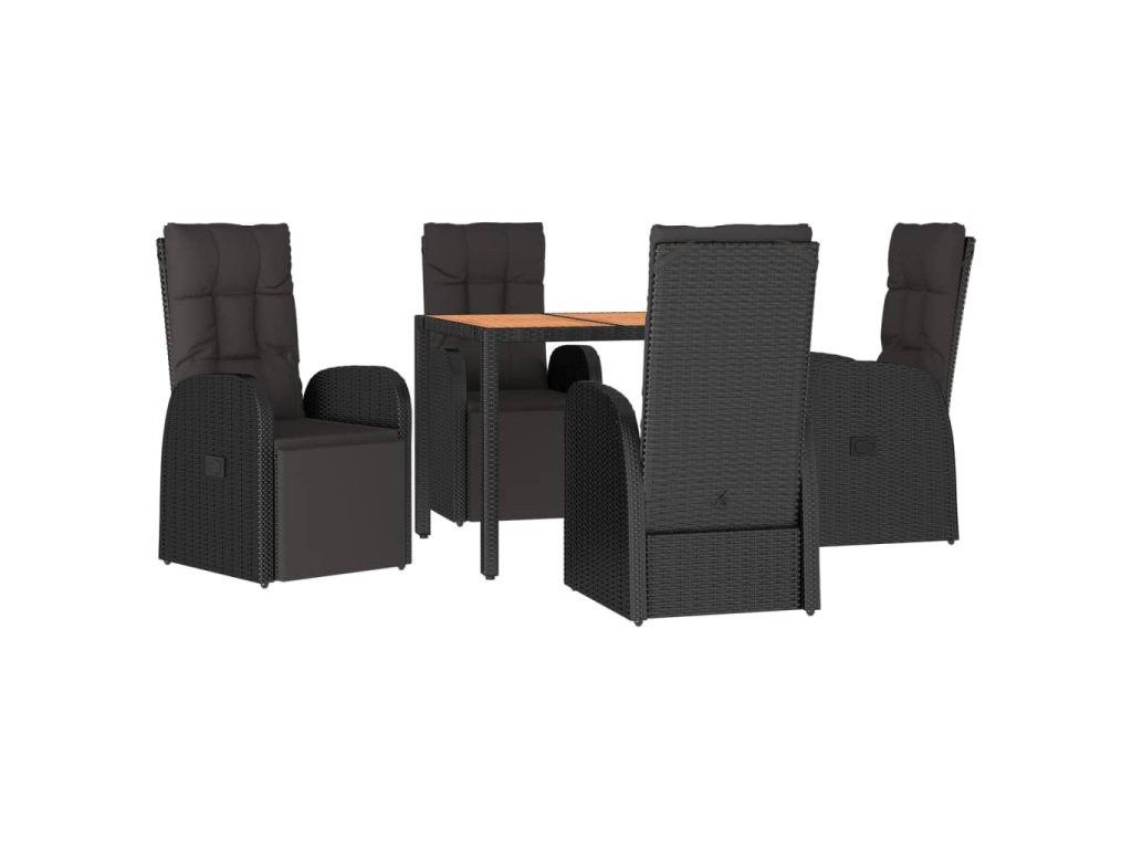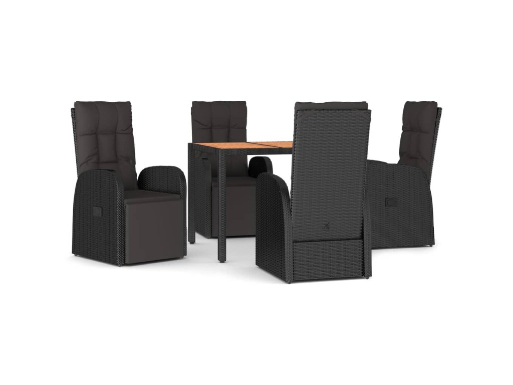 5dílný zahradní jídelní set černý polyratan a masivní akácie 3157607