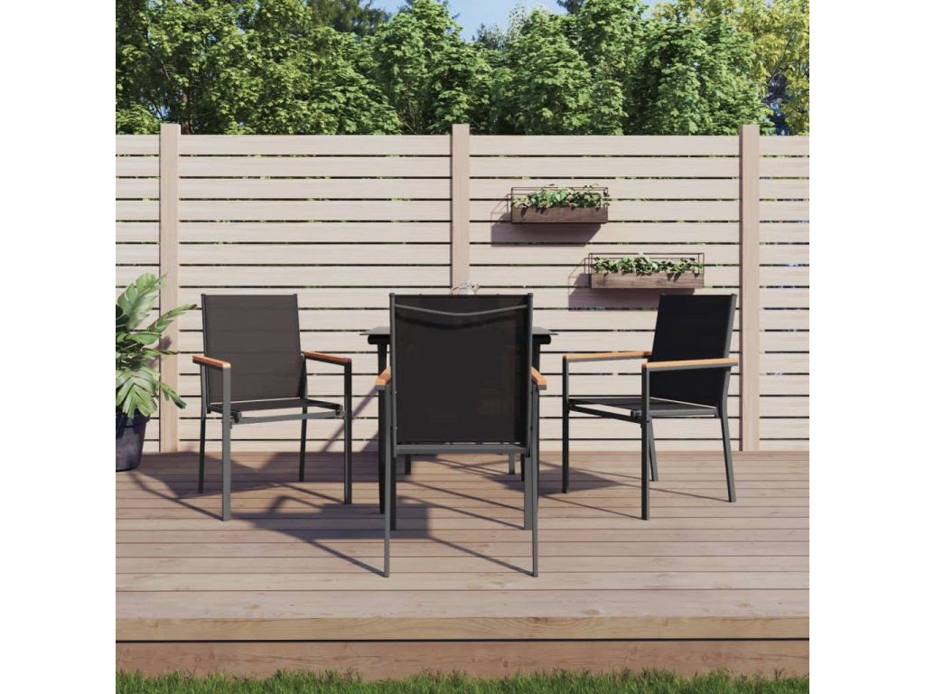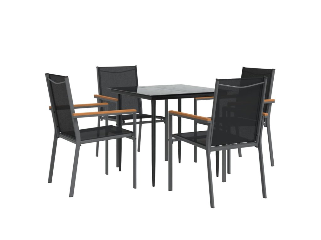 5dílný zahradní jídelní set černý textilen a ocel 3187034