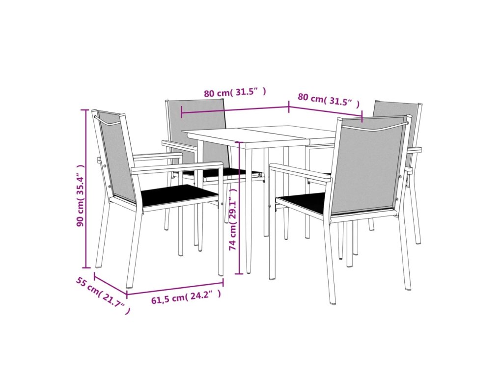 - Robustní a stabilní rám: Jelikož má ocelové rámy, je tento jídelní set robustní a stabilní pro každodenní venkovní použití.