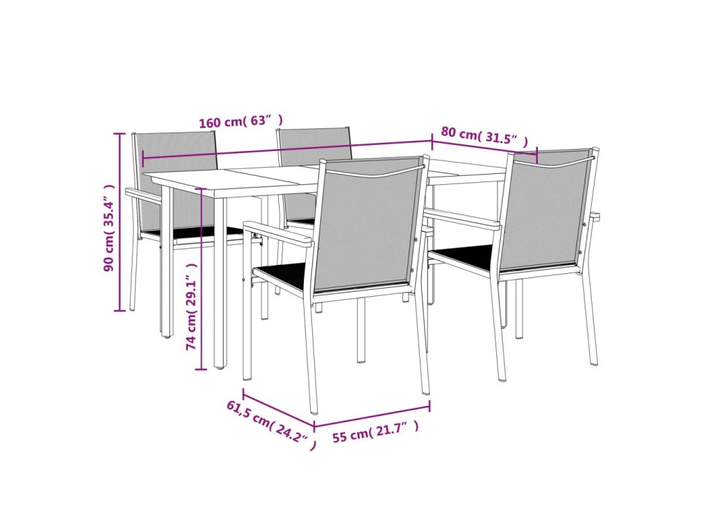 - Robustní a stabilní rám: Jelikož má ocelové rámy, je tento jídelní set robustní a stabilní pro každodenní venkovní použití.