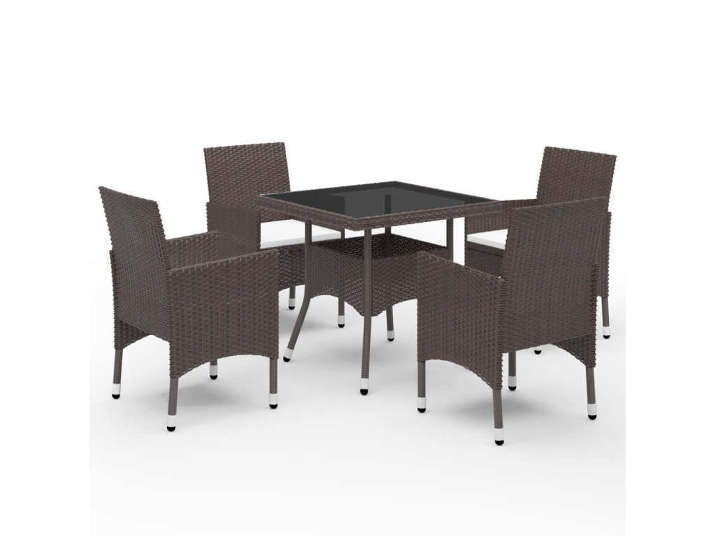 5dílný zahradní jídelní set hnědý polyratan a sklo 3058321