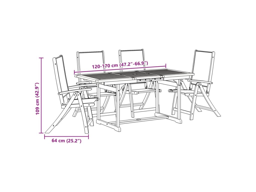 5dílný zahradní jídelní set masivní akáciové dřevo a textilen 3279310