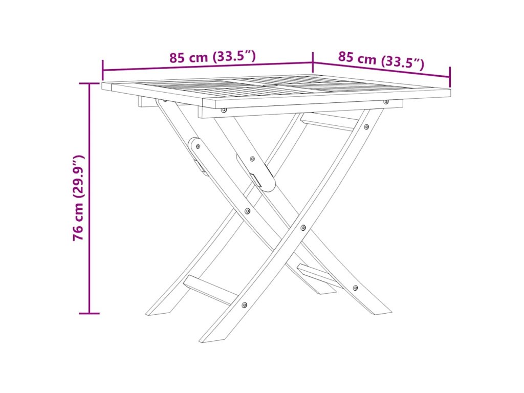 - Rozměry stolu: 85 x 85 x 76 cm (D x Š x V)