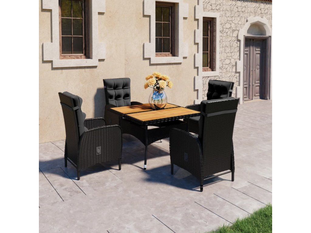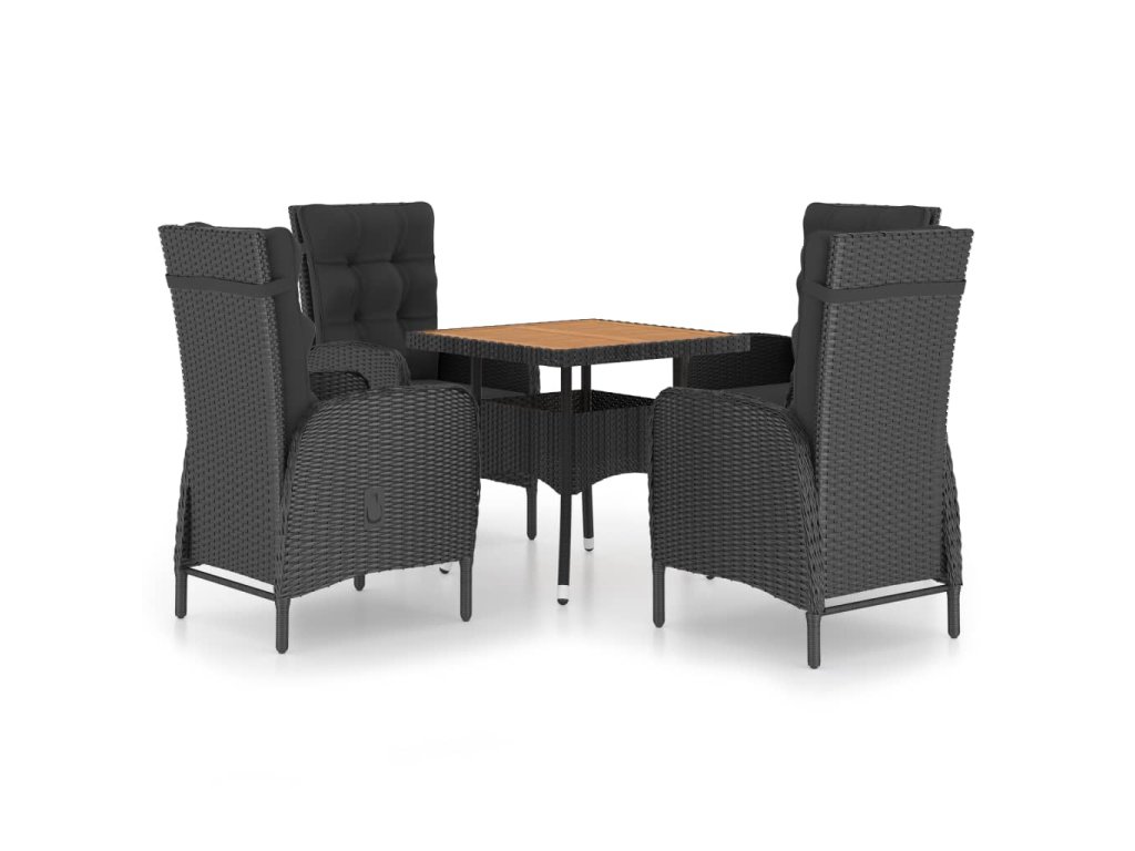 5dílný zahradní jídelní set polyratan a akáciové dřevo černý 3058529