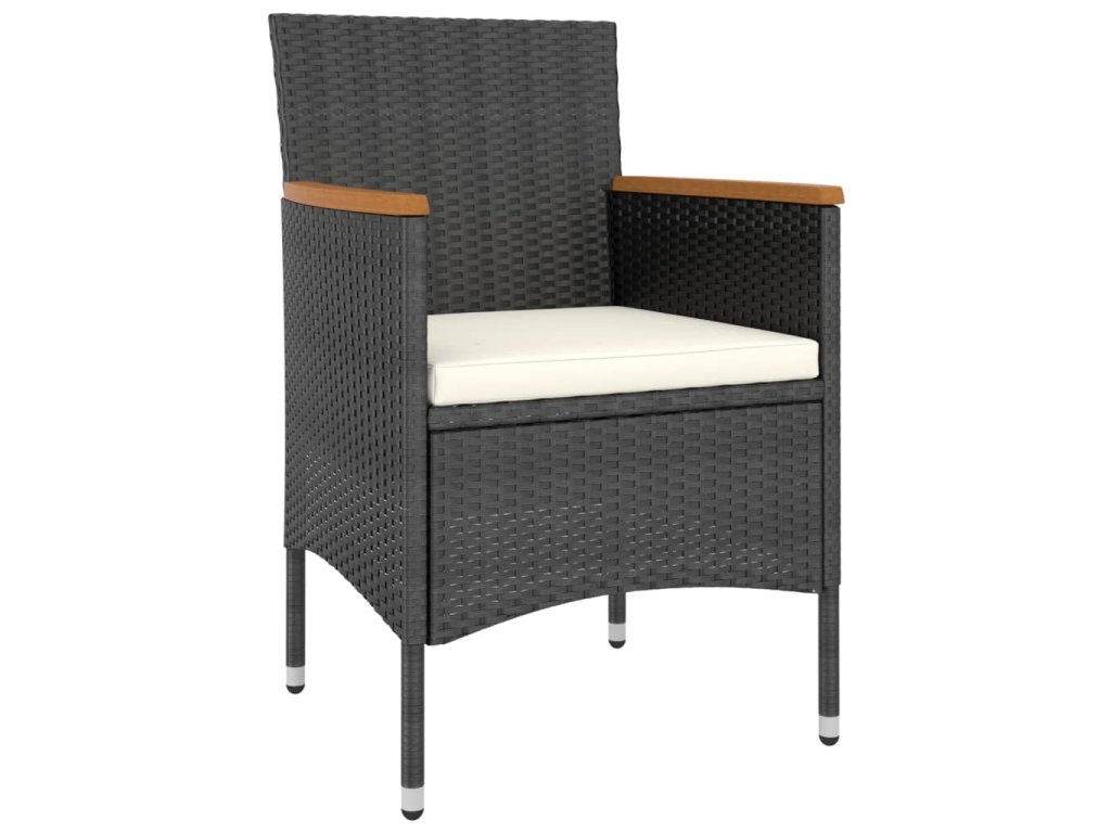 Stůl a židle mají práškově lakovaný ocelový rám opletený PE ratanem, který skvěle odolává povětrnostním vlivům i UV záření, jsou tedy stabilní a mají dlouhou životnost. Židle jsou navrženy se zaobleným opěradlem a područkami pro maximální pohodlí. Součástí balení jsou také podušky, které vám poskytnou ještě větší komfort. Potah je navíc vybaven zipem, takže se dá jednoduše sejmout a vyprat. Stolní deska je zhotovená ze zesíleného tvrzeného skla zasazeného v pevném rámu, snadno se tedy čistí a udržuje. Dvě podnožky zároveň slouží jako dodatečná místa k sezení. Nábytek se vyznačuje lehkou konstrukcí, všechny kusy lze tudíž bez námahy přemisťovat, přestavovat a přepravovat.