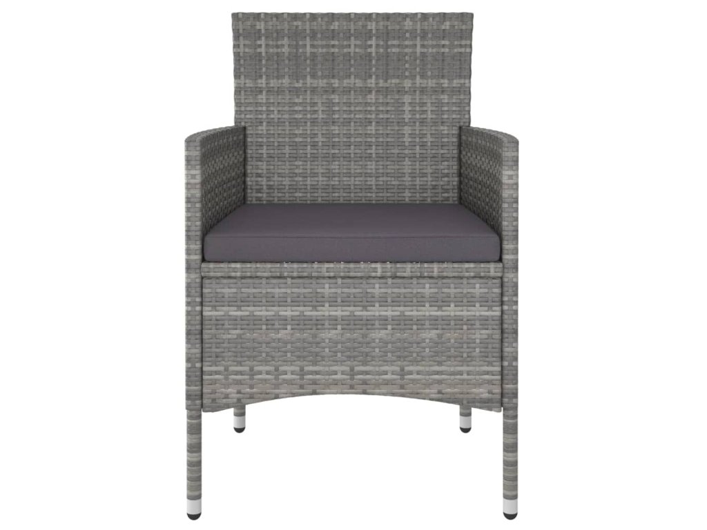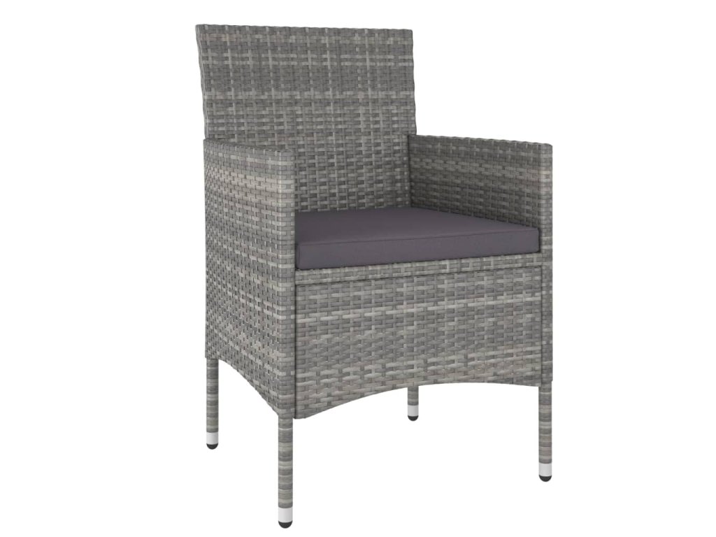 Stůl a židle mají práškově lakovaný ocelový rám opletený PE ratanem, který skvěle odolává povětrnostním vlivům i UV záření, jsou tedy stabilní a mají dlouhou životnost. Židle jsou navrženy se zaobleným opěradlem a područkami pro maximální pohodlí. Součástí balení jsou také podušky, které vám poskytnou ještě větší komfort. Potah je navíc vybaven zipem, takže se dá jednoduše sejmout a vyprat. Stolní deska je zhotovená ze zesíleného tvrzeného skla zasazeného v pevném rámu, snadno se tedy čistí a udržuje. Dvě podnožky zároveň slouží jako dodatečná místa k sezení. Nábytek se vyznačuje lehkou konstrukcí, všechny kusy lze tudíž bez námahy přemisťovat, přestavovat a přepravovat.