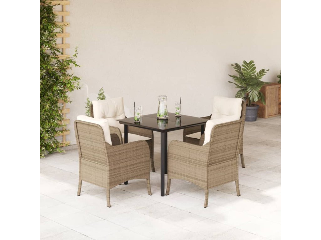 5dílný zahradní jídelní set s poduškami béžový polyratan 3211970