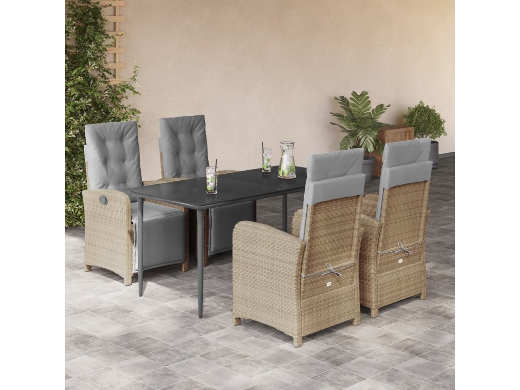 5dílný zahradní jídelní set s poduškami béžový polyratan 3212587