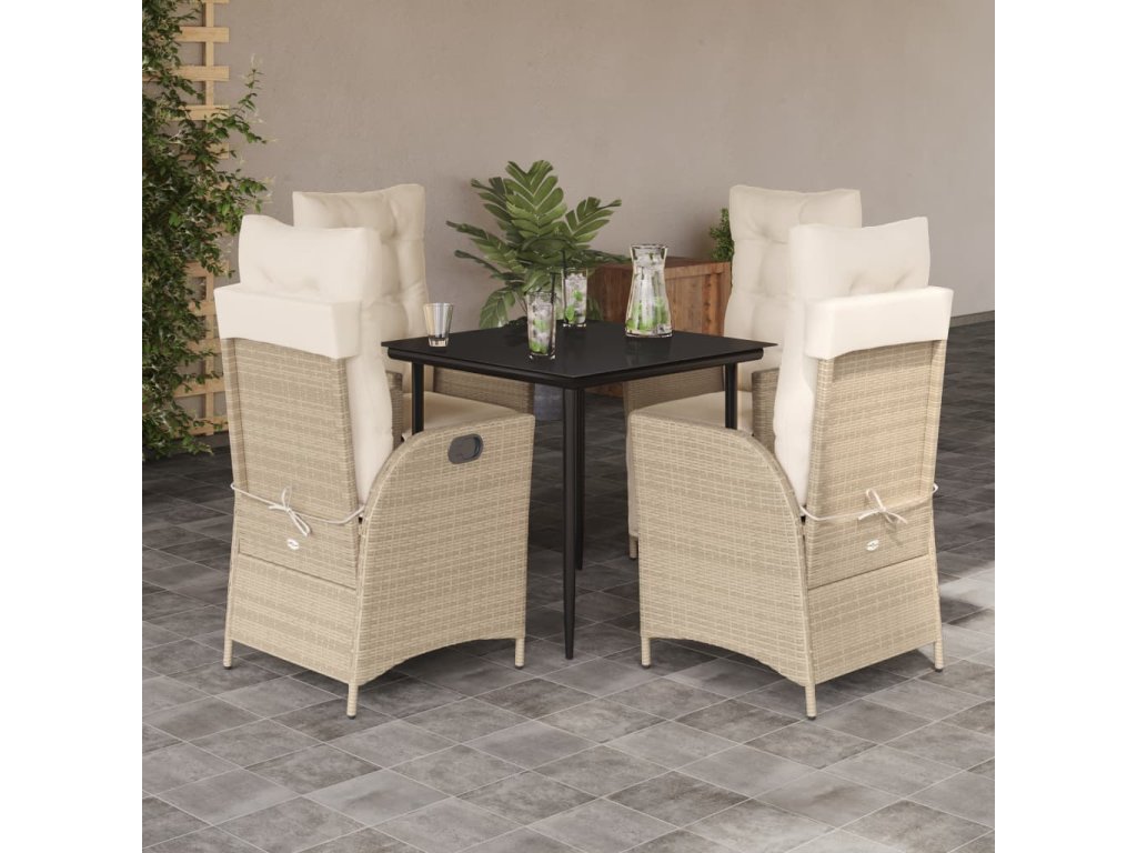 5dílný zahradní jídelní set s poduškami béžový polyratan 3213435