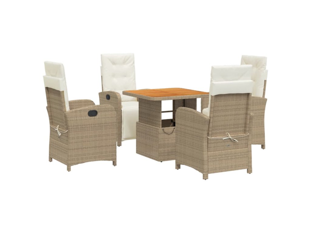 5dílný zahradní jídelní set s poduškami béžový polyratan 3277352