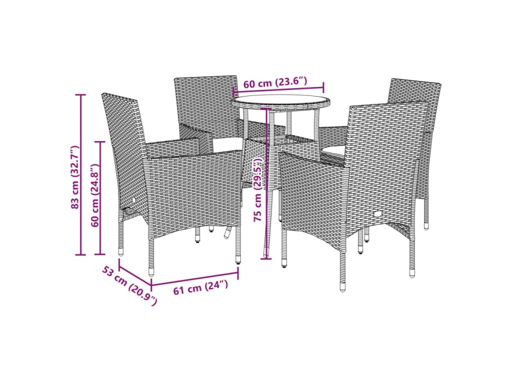 5dílný zahradní jídelní set s poduškami béžový polyratan a sklo 3278624