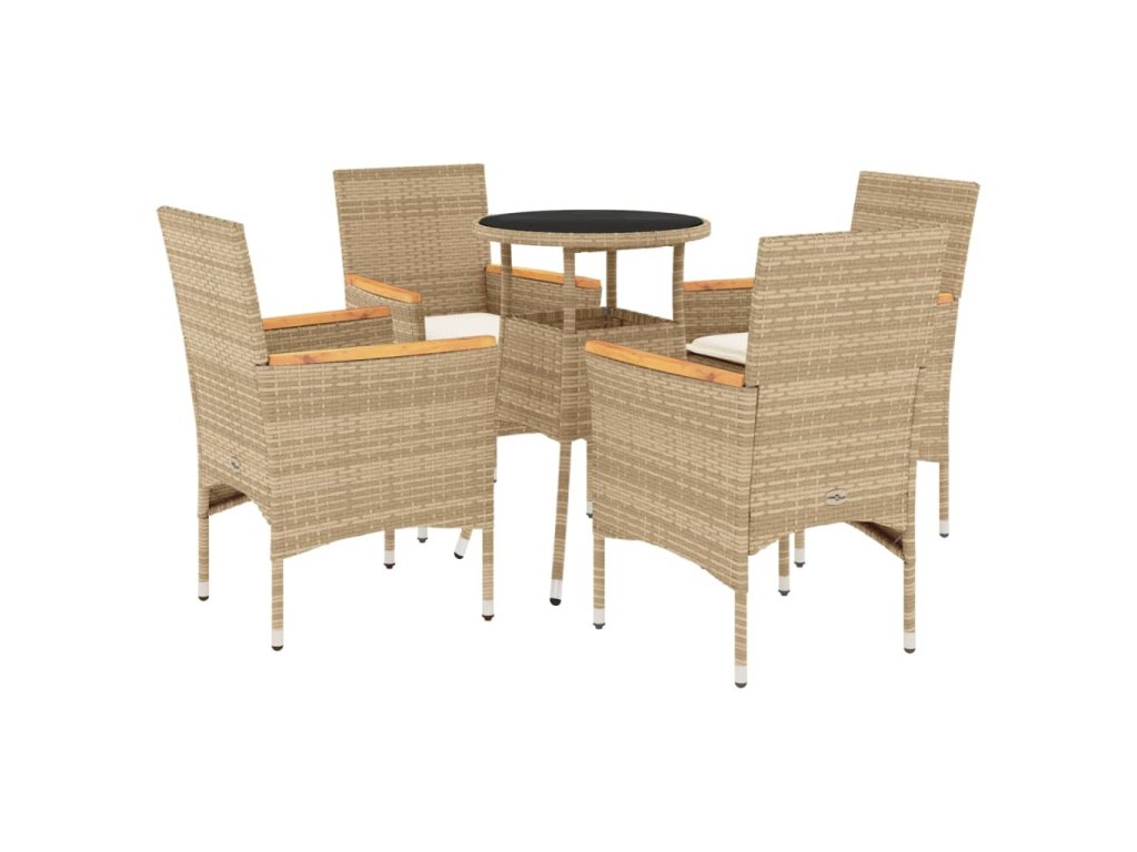 5dílný zahradní jídelní set s poduškami béžový polyratan a sklo 3278726