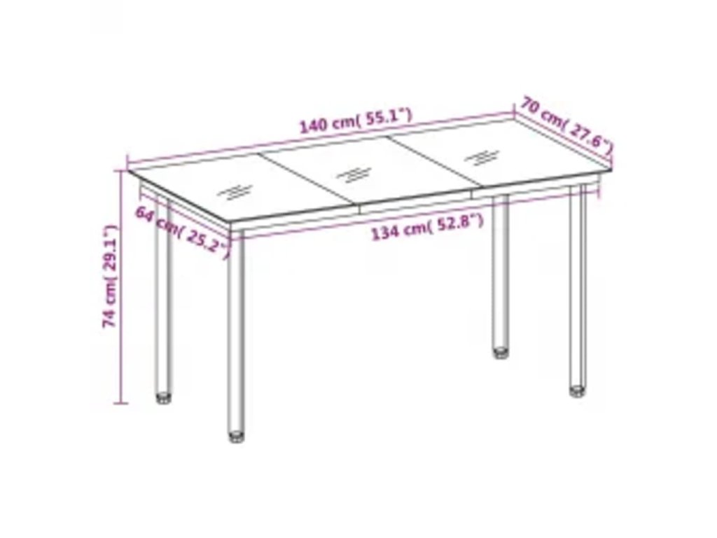 - Rozměry stolu: 140 x 70 x 74 cm (D x Š x V)