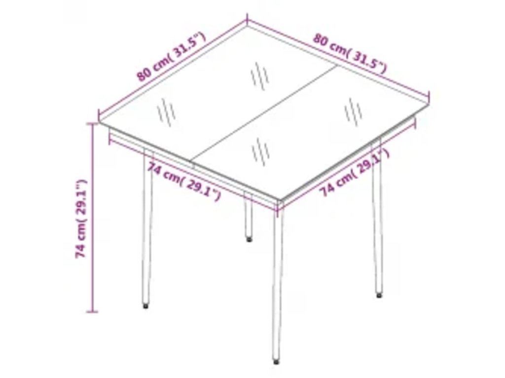 - Rozměry stolu: 80 x 80 x 74 cm (D x Š x V)