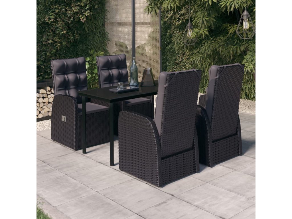 5dílný zahradní jídelní set s poduškami černý 3099481