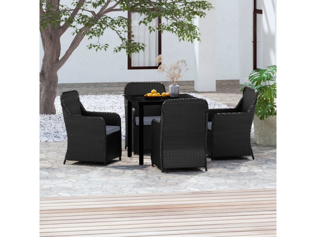 5dílný zahradní jídelní set s poduškami černý 3099530