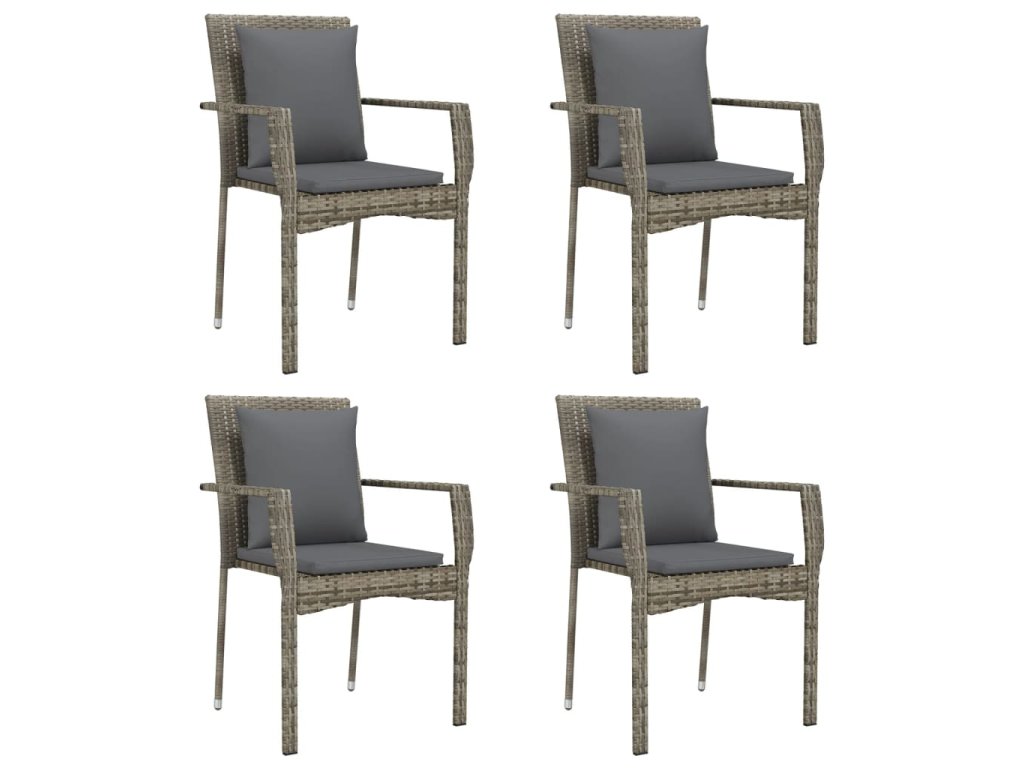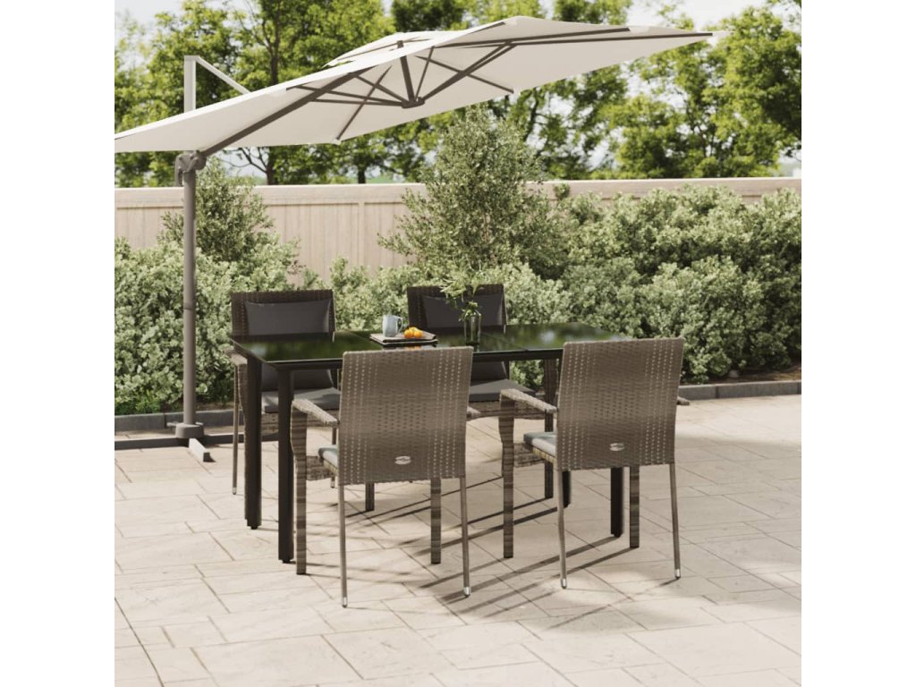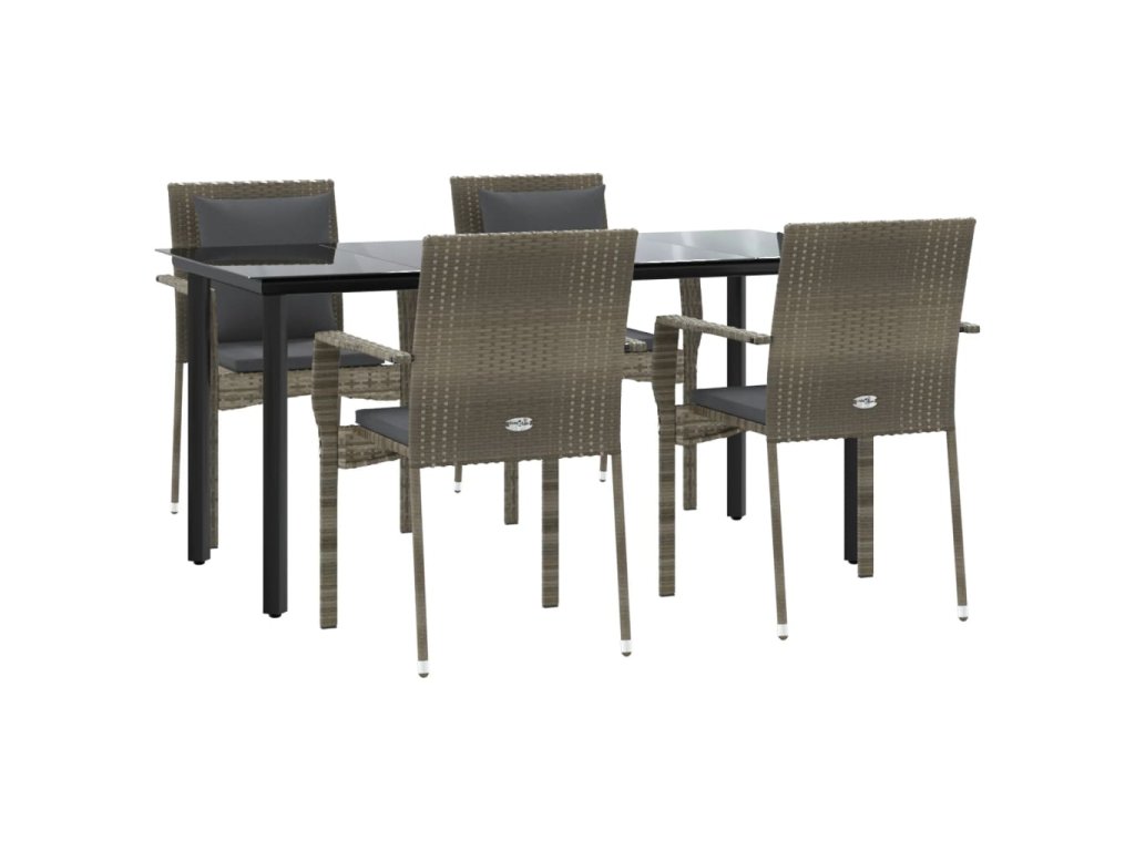5dílný zahradní jídelní set s poduškami černý a šedý polyratan 3185116
