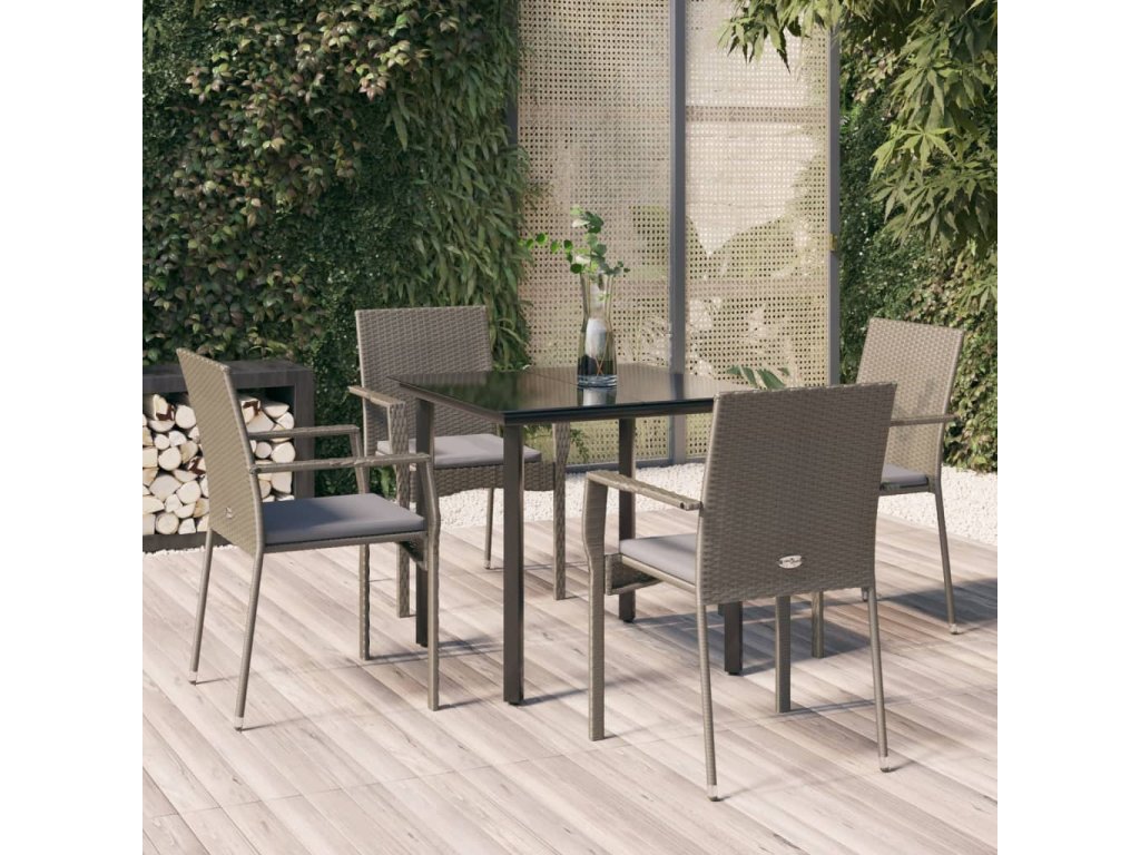 5dílný zahradní jídelní set s poduškami černý a šedý polyratan 3185126