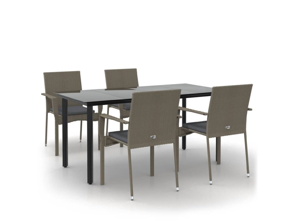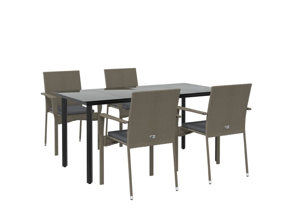 5dílný zahradní jídelní set s poduškami černý a šedý polyratan 3185140