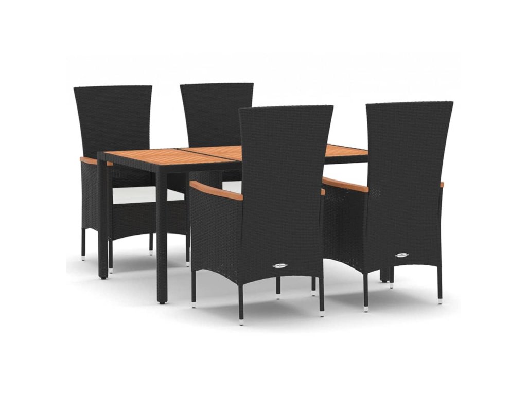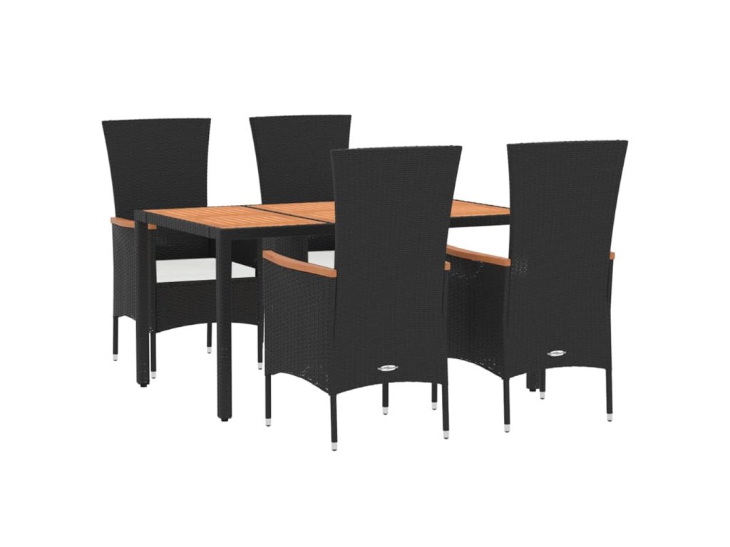 5dílný zahradní jídelní set s poduškami černý polyratan 3157530