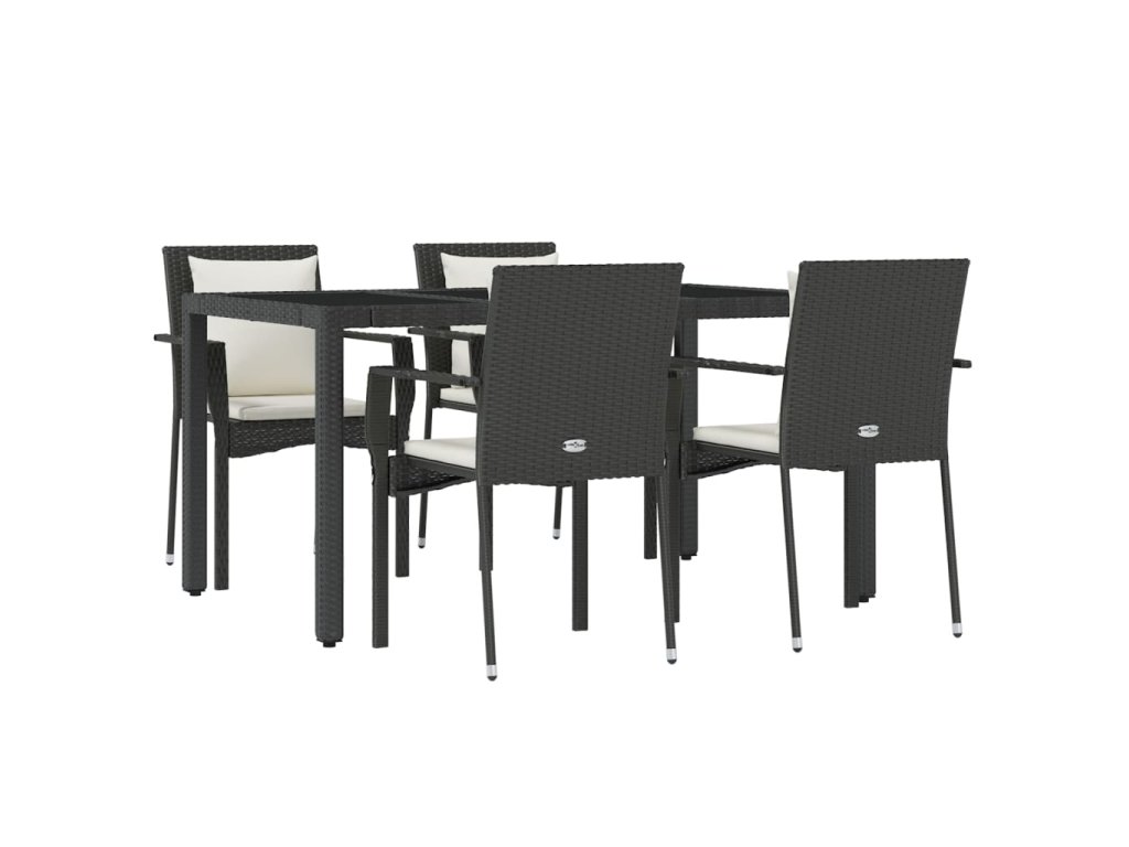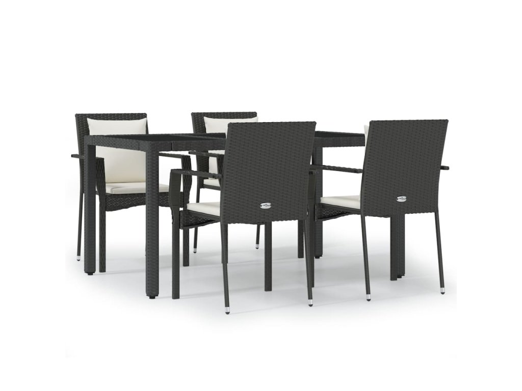 5dílný zahradní jídelní set s poduškami černý polyratan 3157953