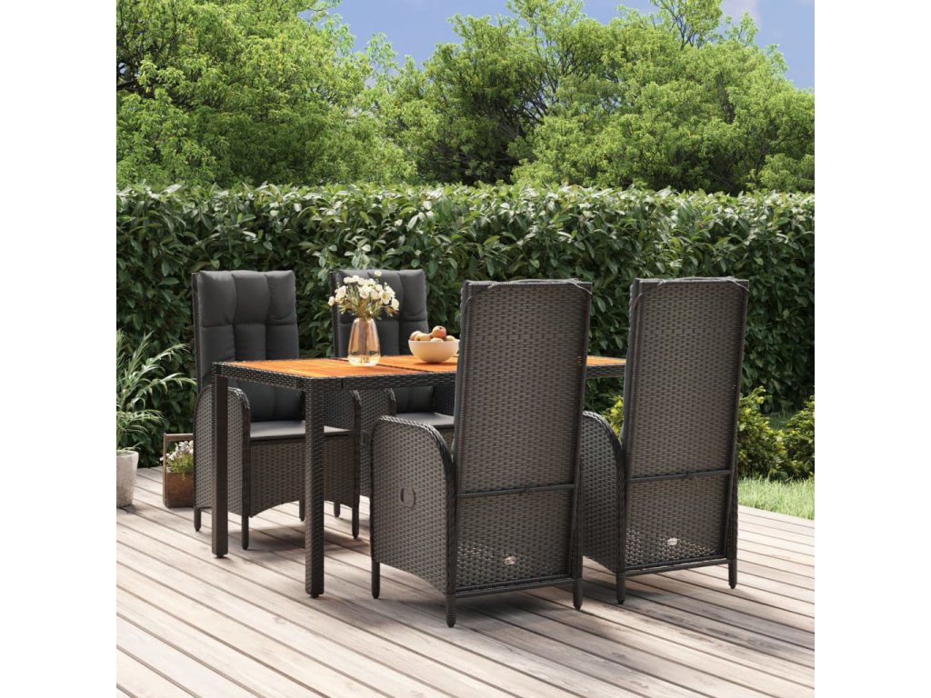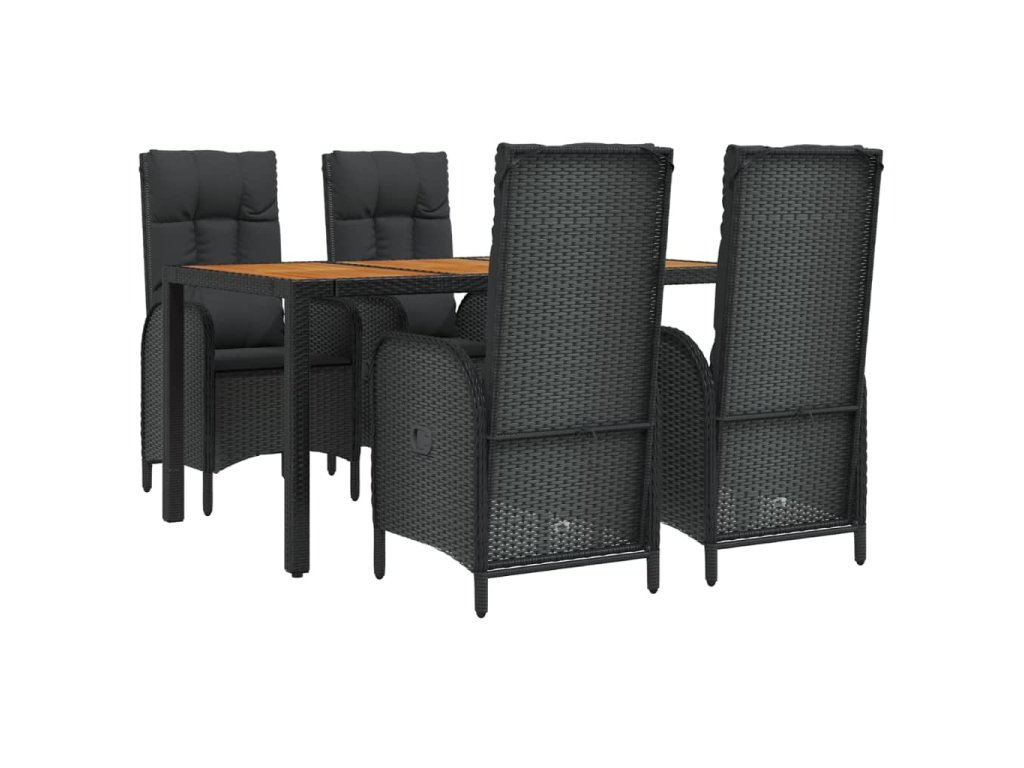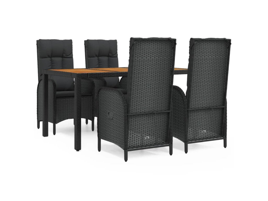 5dílný zahradní jídelní set s poduškami černý polyratan 3185070