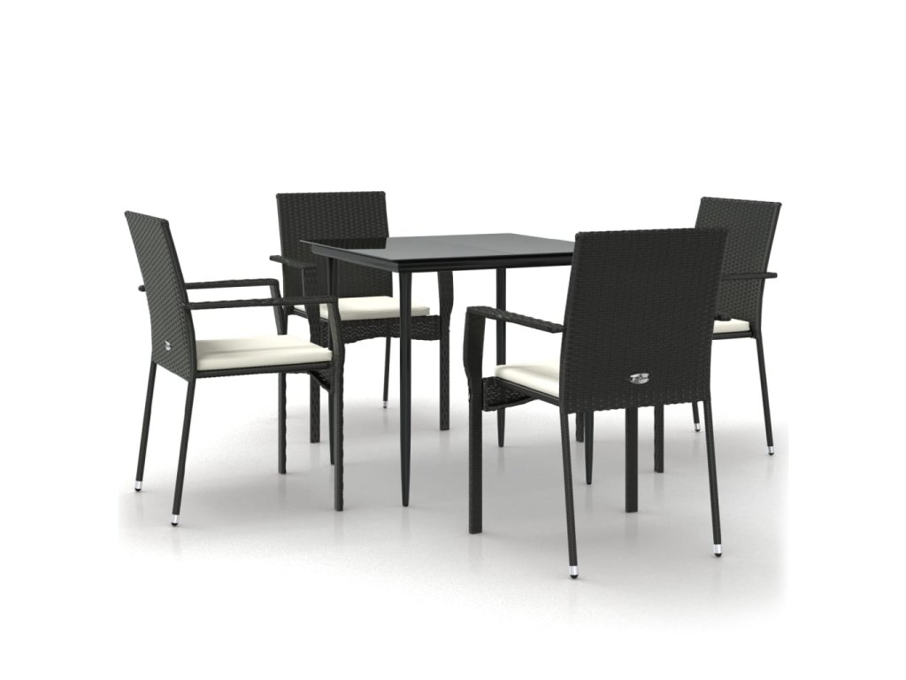 5dílný zahradní jídelní set s poduškami černý polyratan 3185120