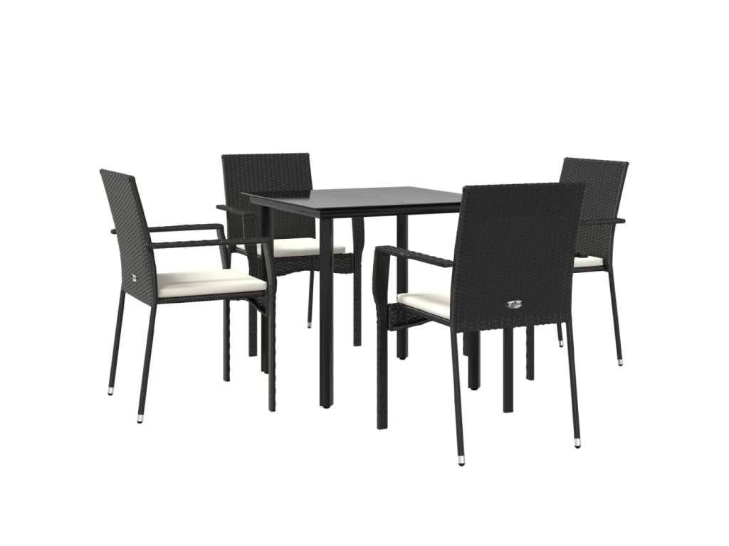 5dílný zahradní jídelní set s poduškami černý polyratan 3185132