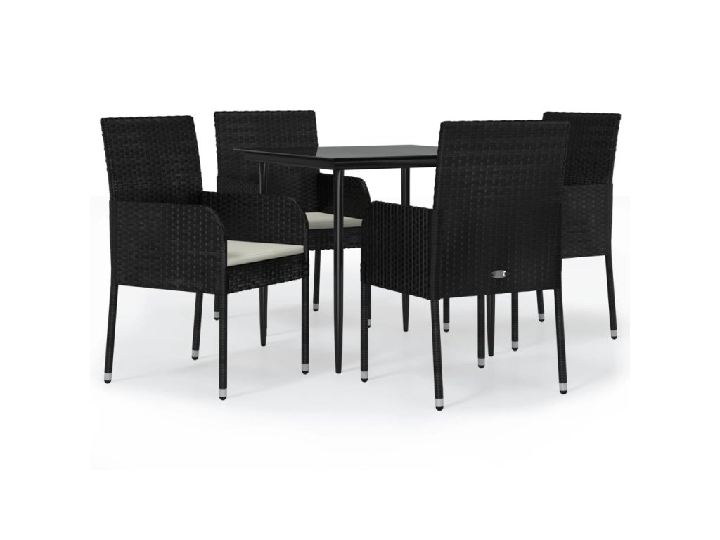 5dílný zahradní jídelní set s poduškami černý polyratan 3185144