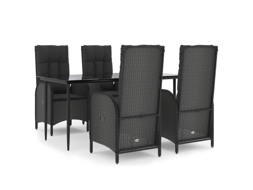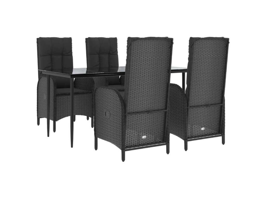 5dílný zahradní jídelní set s poduškami černý polyratan 3185171
