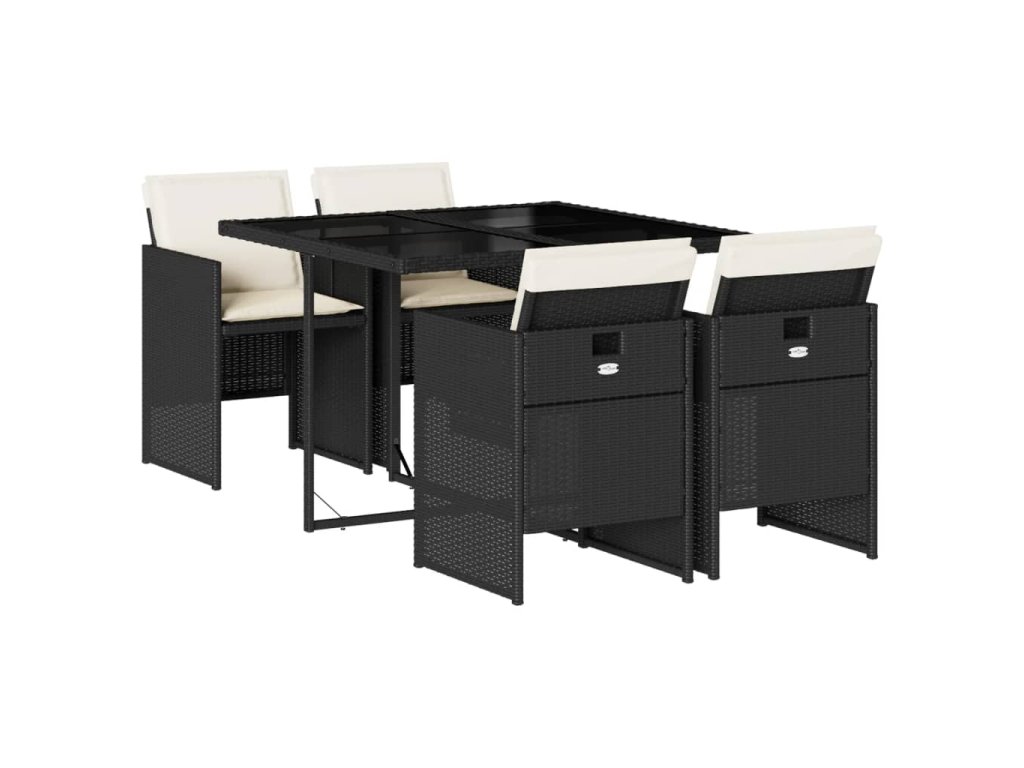 5dílný zahradní jídelní set s poduškami černý polyratan 3210534