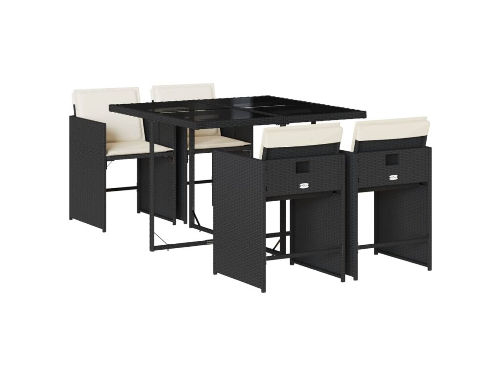 5dílný zahradní jídelní set s poduškami černý polyratan 3211074