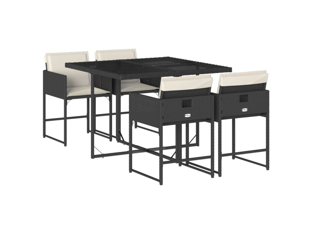 5dílný zahradní jídelní set s poduškami černý polyratan 3211254