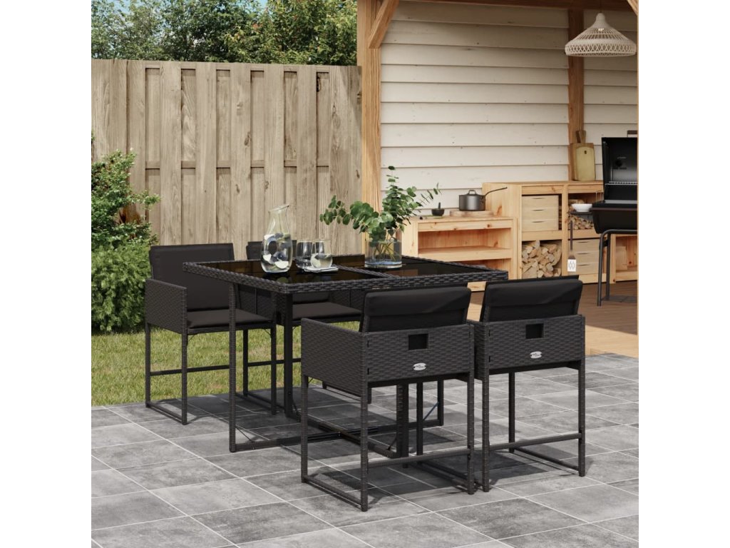 5dílný zahradní jídelní set s poduškami černý polyratan 3211255