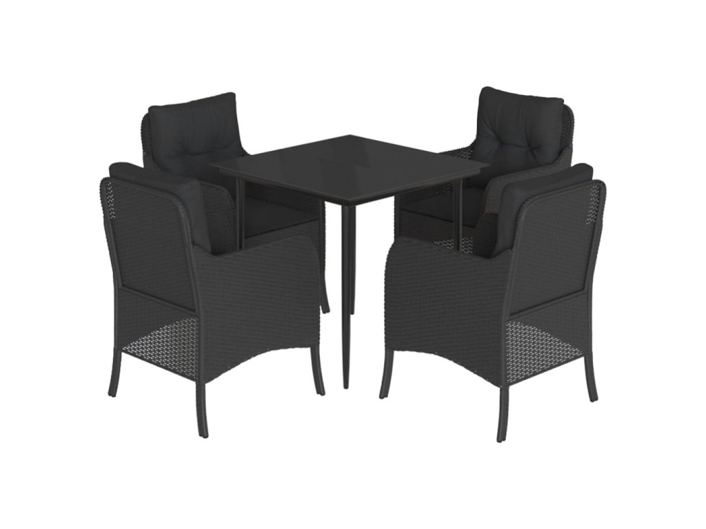 5dílný zahradní jídelní set s poduškami černý polyratan 3211921