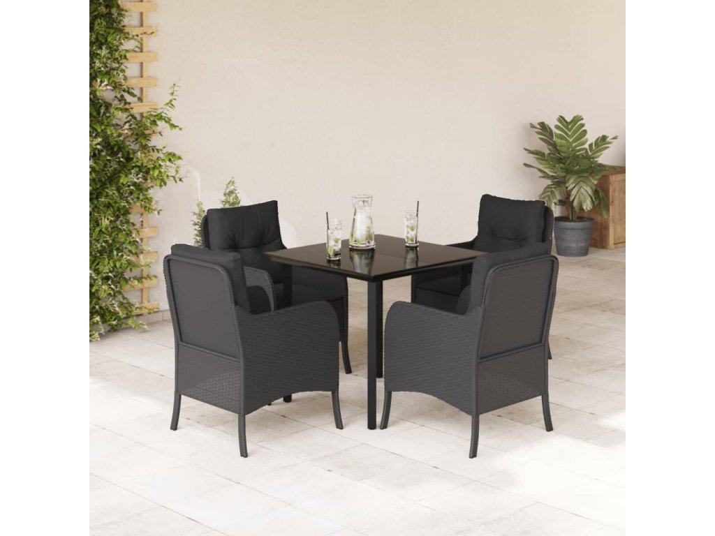 5dílný zahradní jídelní set s poduškami černý polyratan 3211928