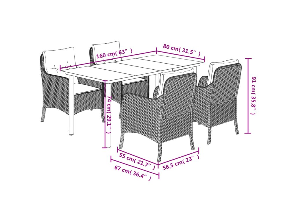 5dílný zahradní jídelní set s poduškami černý polyratan 3211930