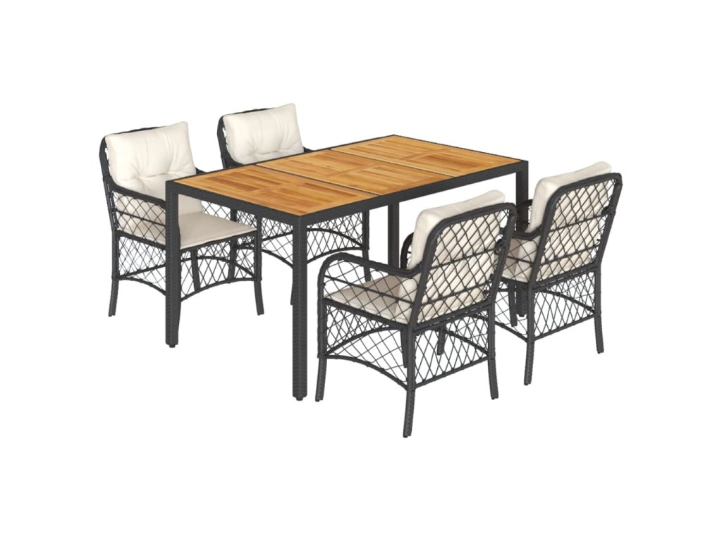 5dílný zahradní jídelní set s poduškami černý polyratan 3212038
